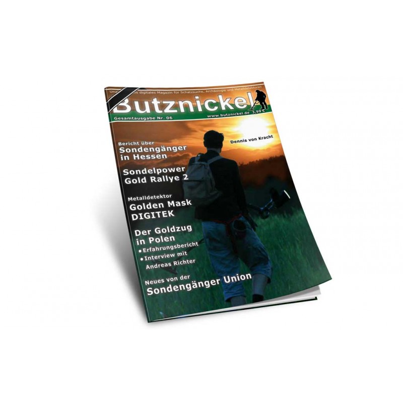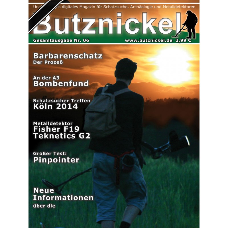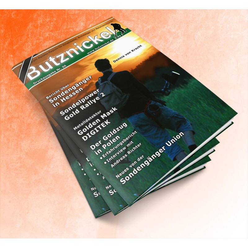 Der Butznickel erscheint mehrfach im Jahr online. Zum Kampfpreis von 3,99 € werden jetzt auf 69 Seiten spannende Geschichten rund um die Themen: Metalldetektoren und Zubehör, Testberichte, Tipps und Tricks, Schatzfunde von Hobbyarchäologen, Neuigkeiten aus der Sondengänger-Szene, Fundrestaurierung und Konservierung, Historisches und Mythisches, Rechtliches zur Schatzsuche und natürlich Hintergründe zu WKI und WKII usw. vorgestellt. |